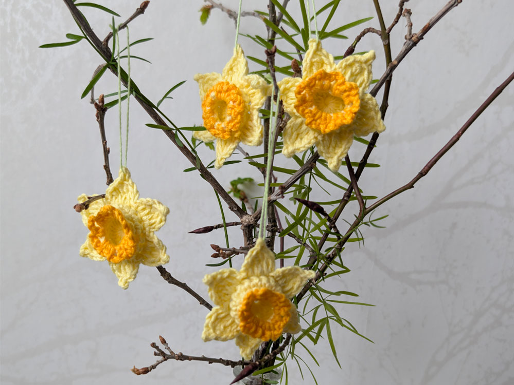 4 nya handvirkade påskliljor / narcisser att hänga i påskriset eller som en fin detalj i hemmet