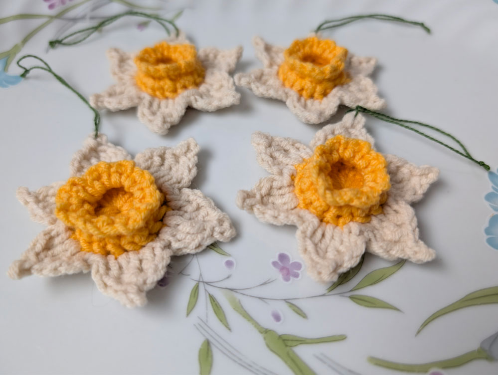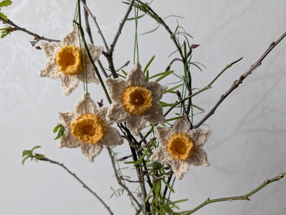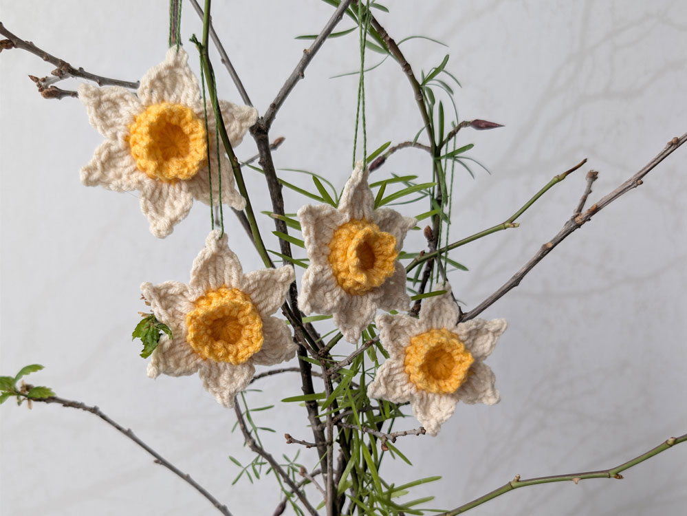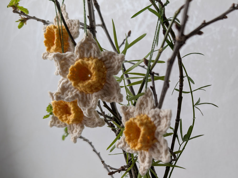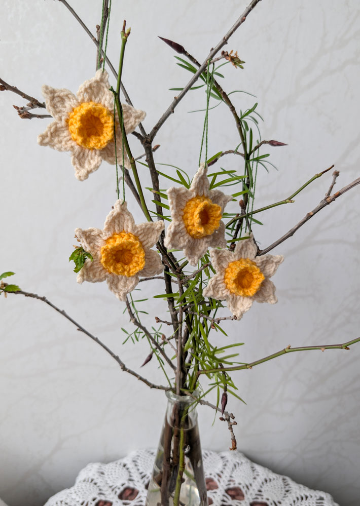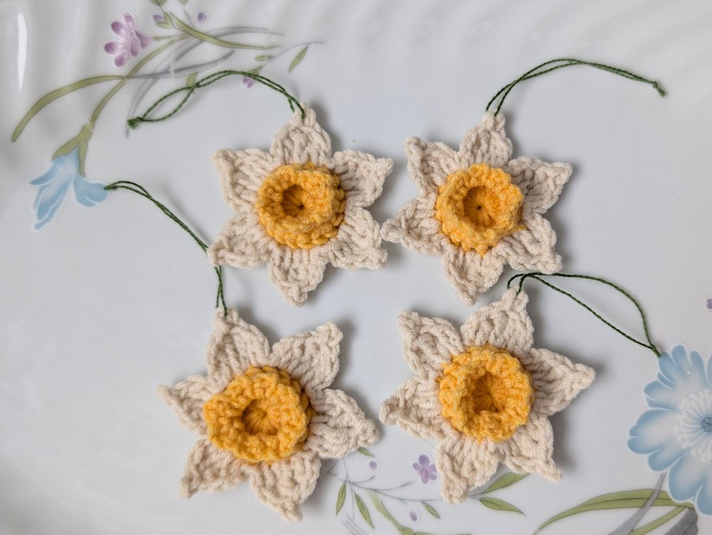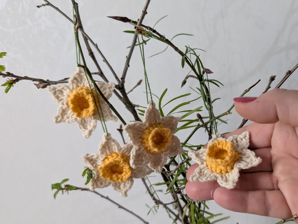 4 nya handvirkade påskliljor / narcisser att hänga i påskriset eller som en fin detalj i hemmet