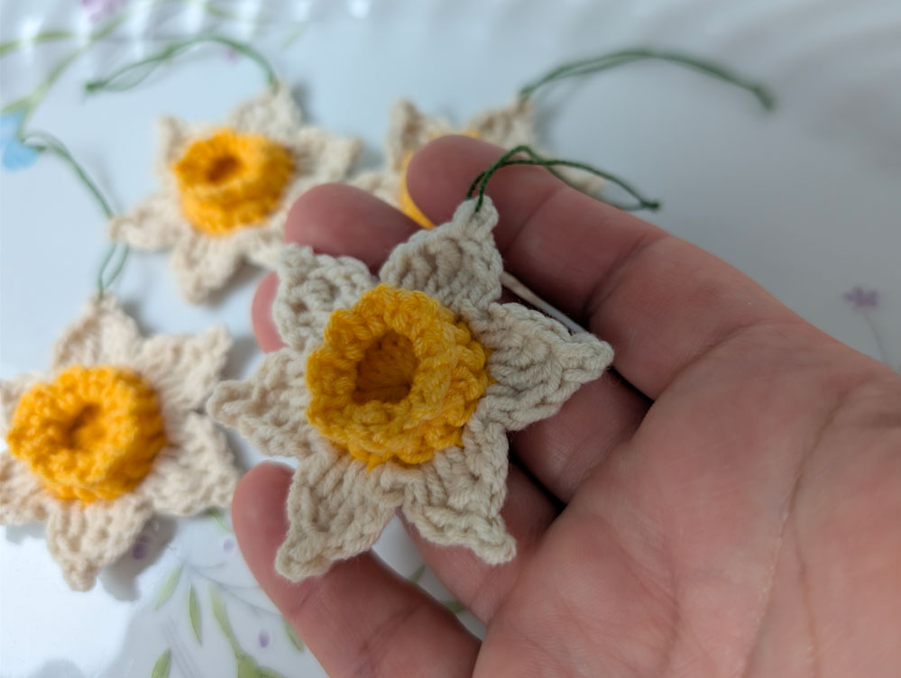 Hängen kan klippa bort av och de virkade blommorna kan användas till det som behövs