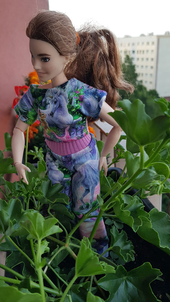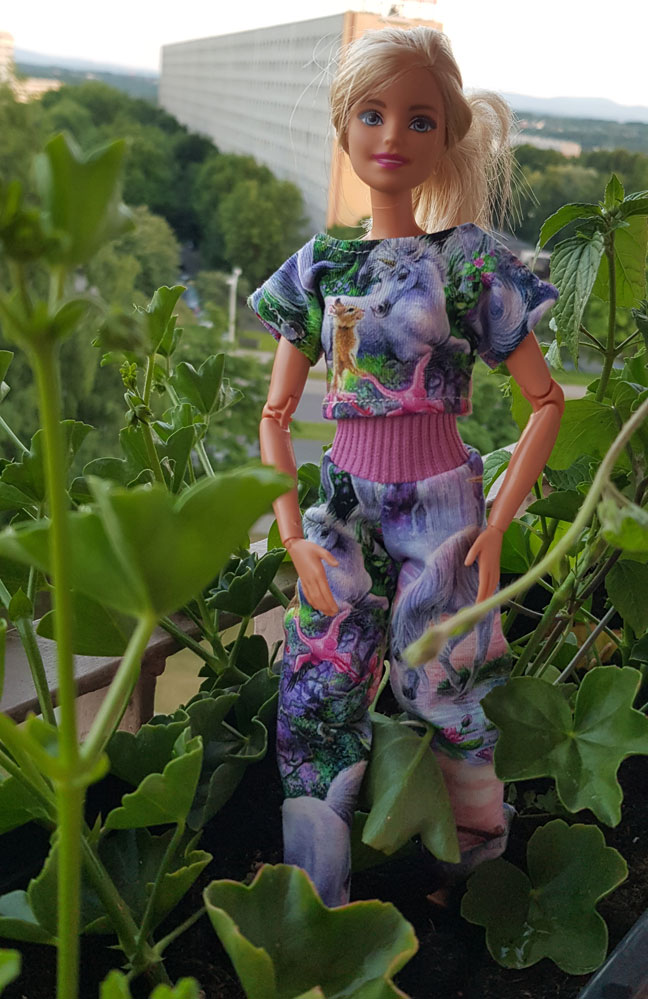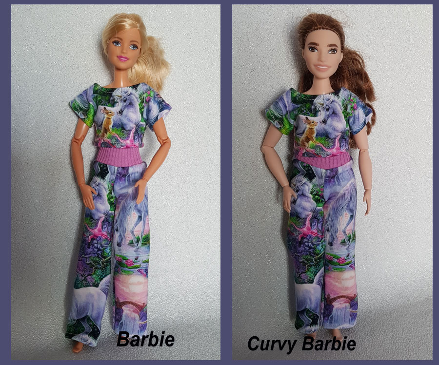 Ett set med nysydda kläder till Barbie och Curvy Barbie
