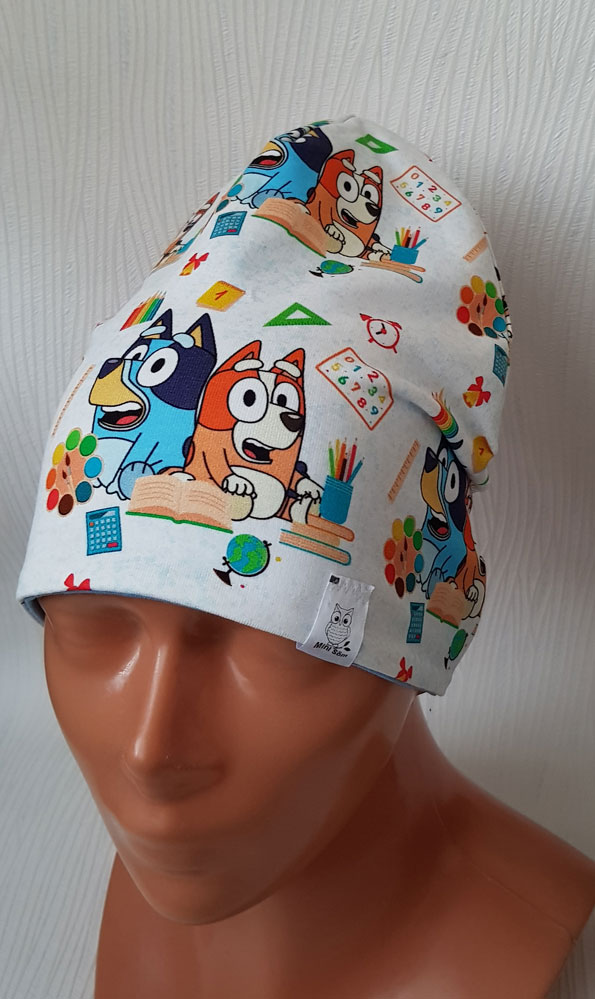 VÄNDBAR mössa! – trikå med mönster på ena sidan /94% bomull 6% elastan/ och enfärgad trikå på andra sidan /94% bomull 6% elastan/