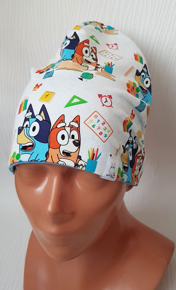 VÄNDBAR mössa! – trikå med mönster på ena sidan /94% bomull 6% elastan/ och enfärgad trikå på andra sidan /94% bomull 6% elastan/