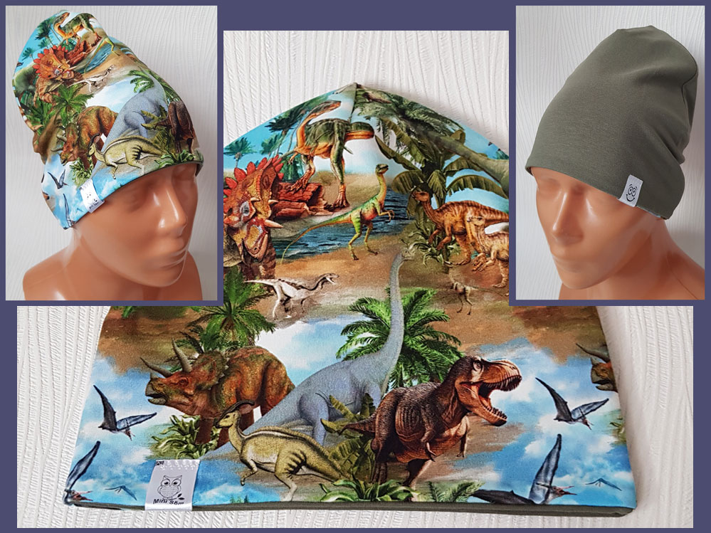 VÄNDBAR mössa! – trikå med mönster på ena sidan /94% bomull 6% elastan/ och enfärgad trikå på andra sidan /94% bomull 6% elastan/