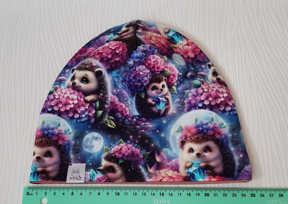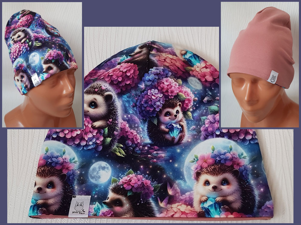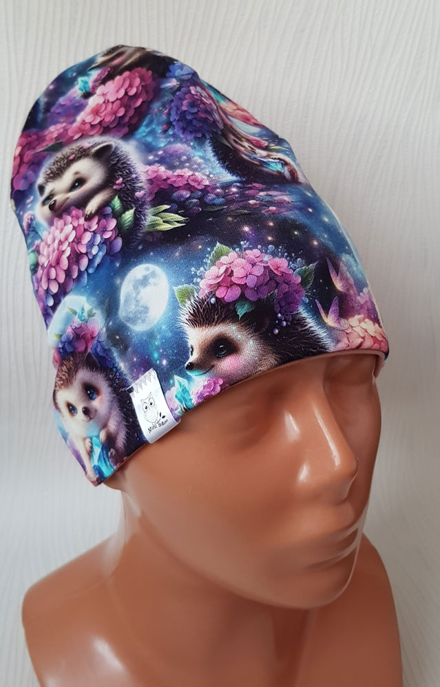 VÄNDBAR mössa! – trikå med mönster på ena sidan /94% bomull 6% elastan/ och enfärgad trikå på andra sidan /94% bomull 6% elastan/