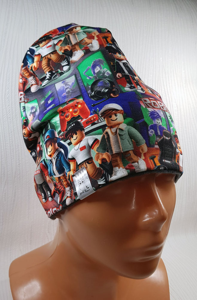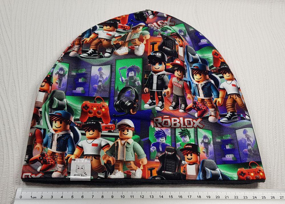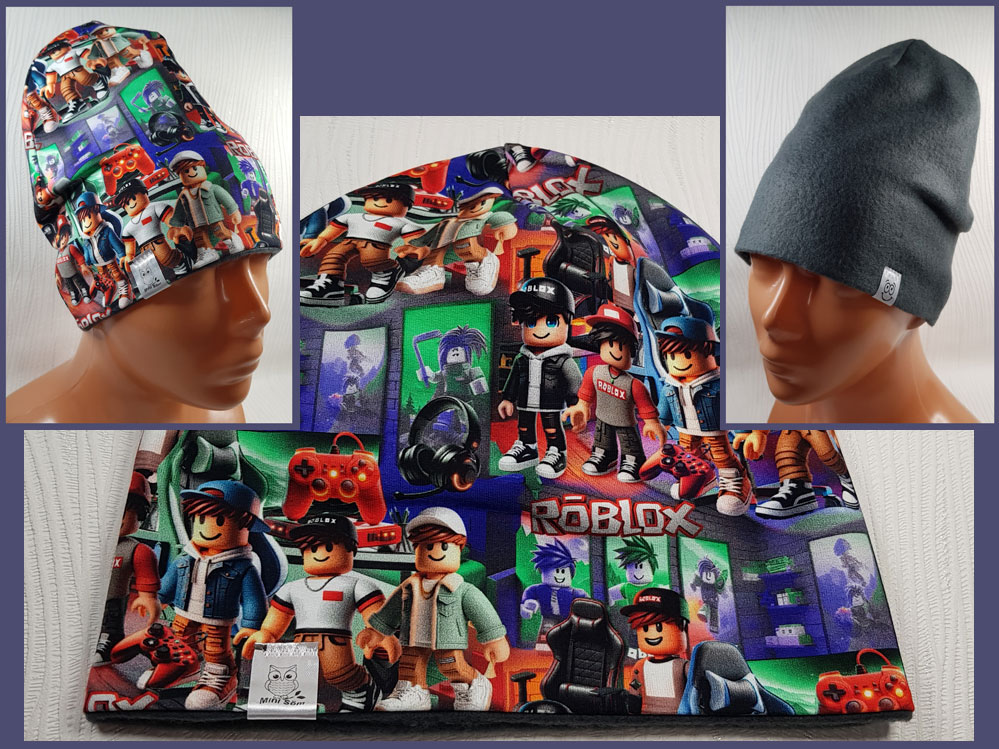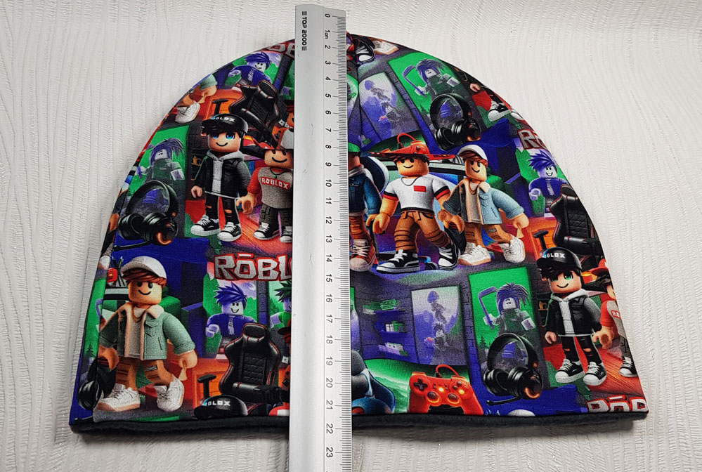 VÄNDBAR mössa! – trikå med mönster på ena sidan /94% bomull 6% elastan/ och enfärgad fleece på andra sidan /100% polyester/